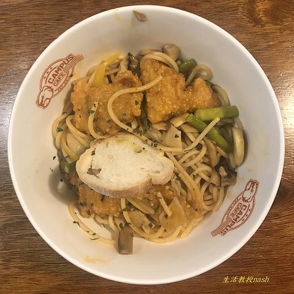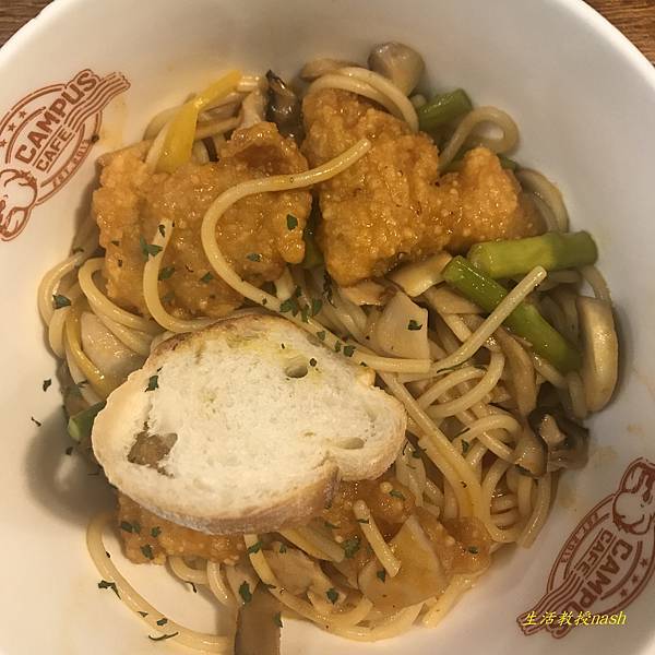 CAMPUS的唐揚雞很嫩Q彈,味道偏甜辣,有種在吃糖醋魚炒麵帶點辣味的感覺,
