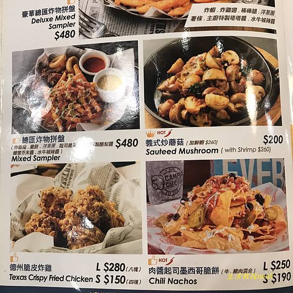 CAMPUS餐點種類非常多,從沙拉、漢堡、開胃菜、燉飯、義大利麵及吐司類等等,